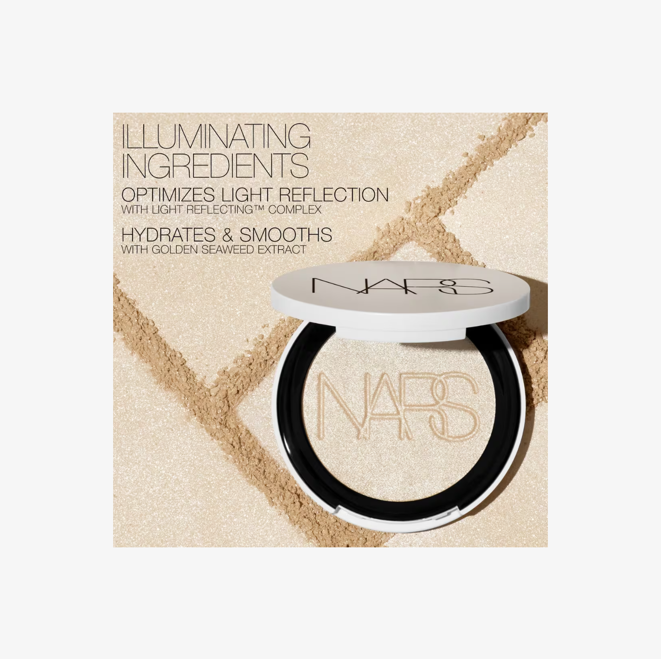 El Polvo Iluminador Reflectante de Luz de NARS es un iluminador de alto rendimiento que aporta un brillo radiante y etéreo con una duración de hasta 10 horas.