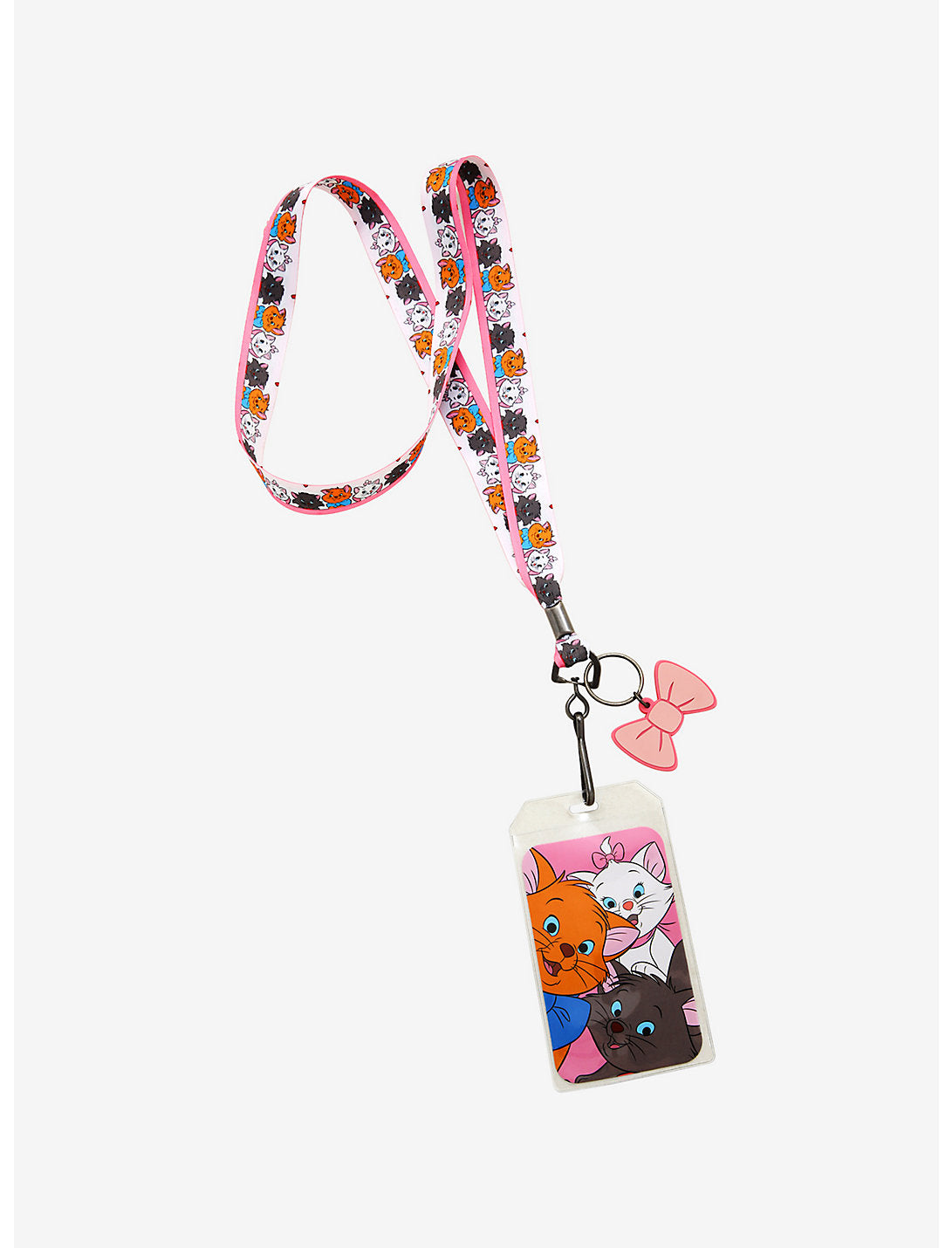 ¡No seas un gatito con tus llaves! Este cordón presenta a Marie, Toulouse y Berlioz. Pantalla de identificación clara y dije de lazo rosa de goma.