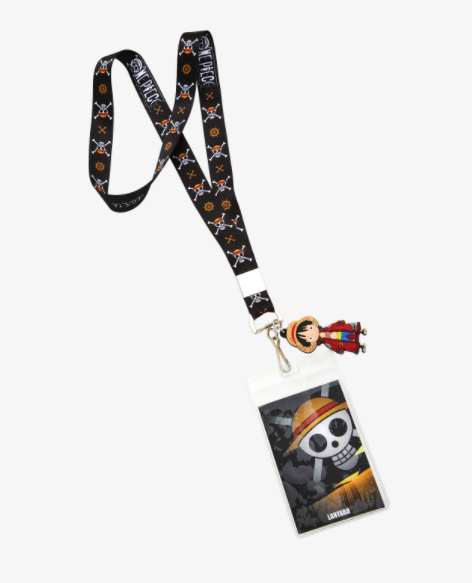 Inspirado en el épico anime One Piece, este cordón presenta al capitán más buscado de todos los mares, Monkey D. Luffy. La banda presenta el Jolly Roger de los Piratas de Sombrero de Paja, una funda de identificación transparente y un amuleto de PVC del líder pirata.