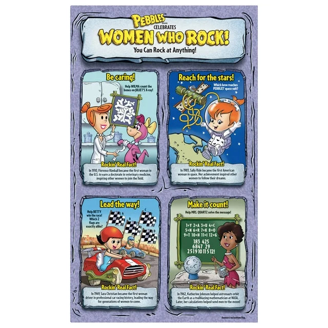 Celebre a las mujeres que rockean y disfrutan de las delicias afrutadas de Yabba Dabba Doo con cada tazón de cereal para niños Post Berry Fruity PEBBLES. Estos coloridos trozos de cereal sin gluten, inspirados en Wilma, Betty y Pebbles, despiertan alegría en los niños a la hora del desayuno y ayudan a despertar la imaginación de los pequeños para un día lleno de aventuras. Las patatas fritas de cereal de arroz Berry PEBBLES brindan un crujido dulce y afrutado con cada cucharada e inspiran a los niños a potenciar su creatividad interior. Hay infinitas maneras de disfrutar el sabor afrutado del cereal para niños Berry PEBBLES. Disfrute de este cereal seco de arroz crujiente solo o en un tazón clásico de cereal frío con leche. O deja volar la creatividad y crea todo tipo de ideas divertidas de postres caseros con esta gran caja de cereal de patatas fritas de arroz Berry PEBBLES. Use cereal Berry Fruity PEBBLES seco para cubrir mini tazas de pastel de queso del tamaño de un bocado o use este cereal sin gluten para hacer un divertido pastel en taza Berry PEBBLES. Incluso puedes usar este cereal afrutado de color rosa, morado y azul con otros materiales de arte para niños para crear encantadores proyectos de arte para niños que los más pequeños se divertirán creando. No importa la edad, esta vibrante bolsa de cereales con patatas fritas de arroz endulzadas atrae a creadores de todas las edades e inspira a todos a soñar en grande. Anime a los niños a nunca dejar de hacer cosas con el cereal Post Berry PEBBLES.
