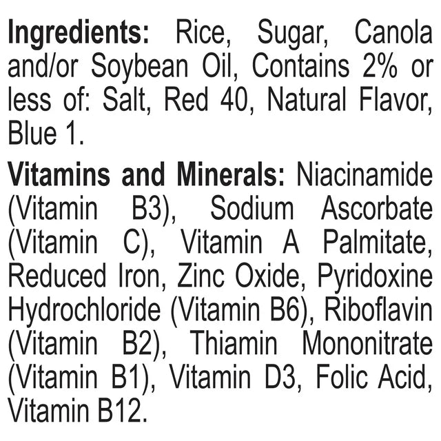 Las patatas fritas de arroz con cereales endulzadas ofrecen un colorido crujiente afrutado en cada deliciosa cucharada.