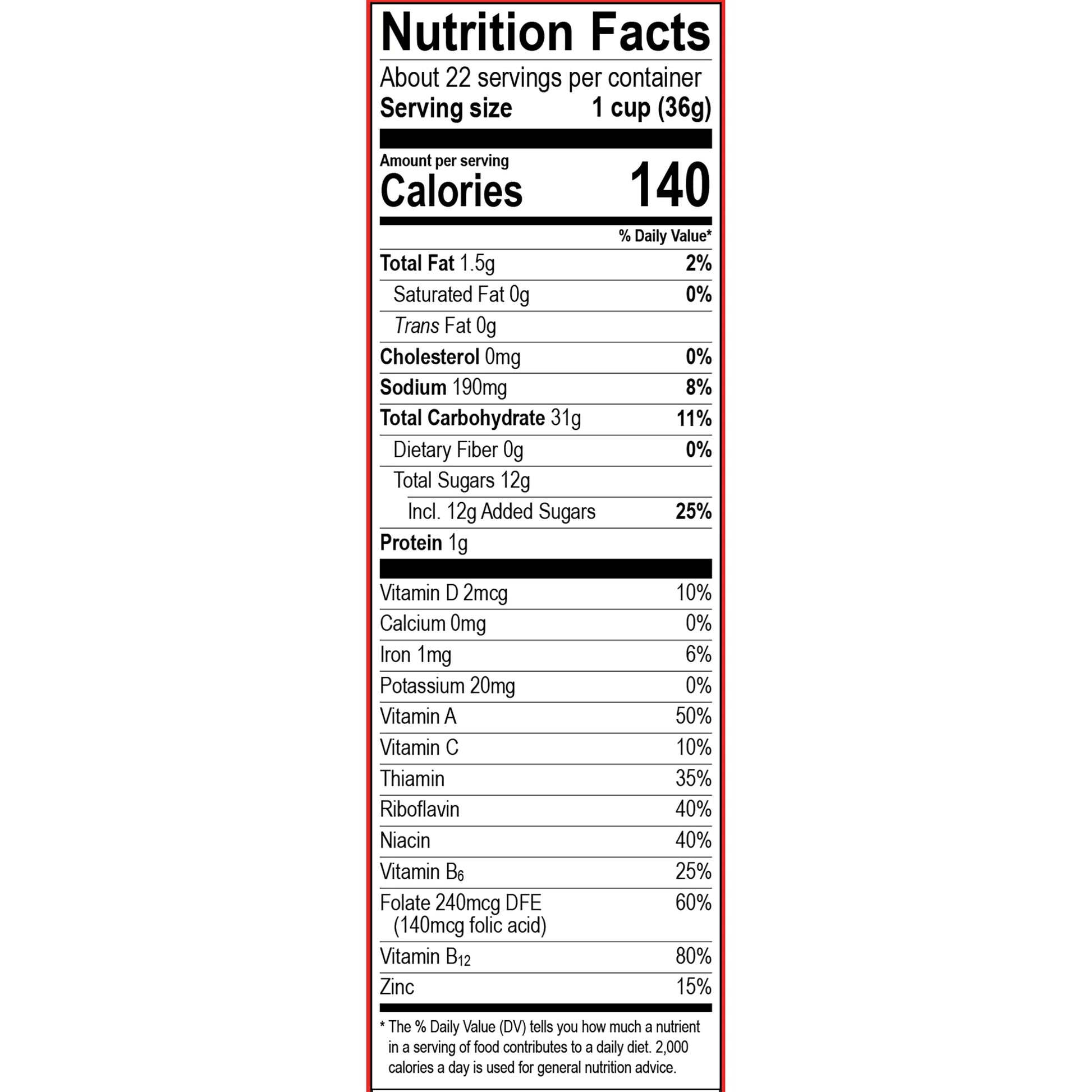 Cereal para niños repleto de sabores de frutas naturales y artificiales.