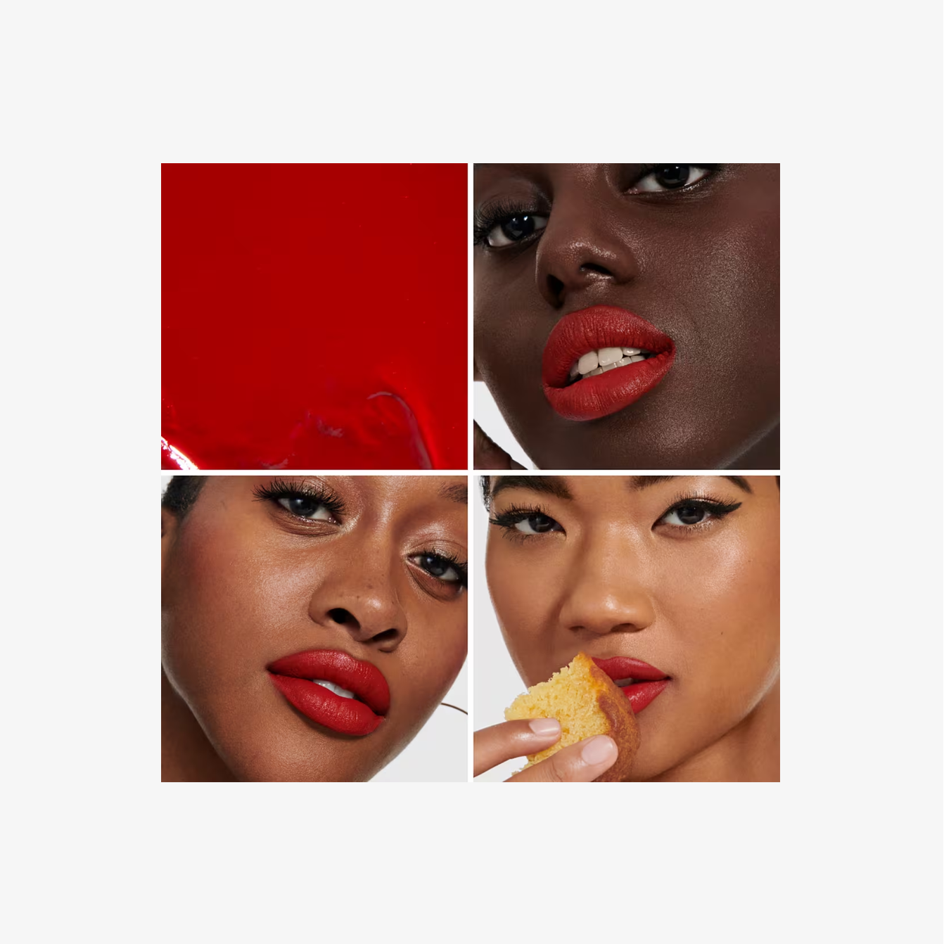 El Red Batter Cake Batter Liquid Lipstick de Pound Cake es una fórmula innovadora y clean que se aplica como mantequilla y puede usarse como labial, tinte o stain. Diseñado con la teoría del color en mente, está disponible en varios tonos para diferentes subtonos de labios, logrando que cada persona encuentre su tono ideal.
