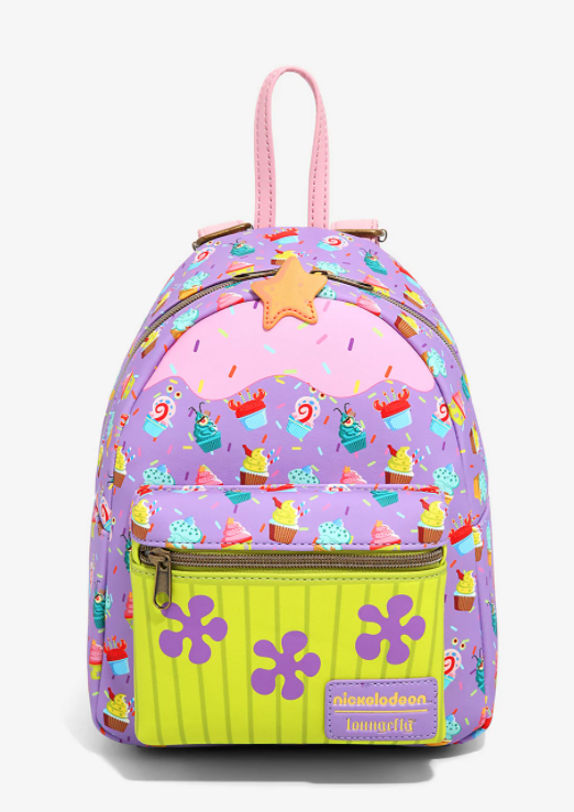 ¿Y si todos tus amigos favoritos de Bikini Bottom se convirtieran en cupcakes? Bueno, probablemente se parecerían a esta mochila. La mochila púrpura de Bob Esponja está impresa por todas partes con Bob Esponja, Patricio, Calamardo, Don Cangrejo, Gary y Plankton como cupcakes. Con una estrella aplicada, bolsillo frontal con cremallera, cierre de cremallera superior, correas ajustables, asa de transporte superior y bolsillo interior.