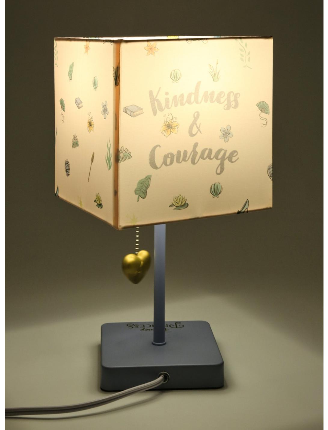 ¡Deja que la luz brille con esta lámpara de Princesas Disney! Con un retrato de sus princesas favoritas y un tirador en forma de corazón, esta lámpara es la pieza perfecta para traer un poco de realeza a su habitación.