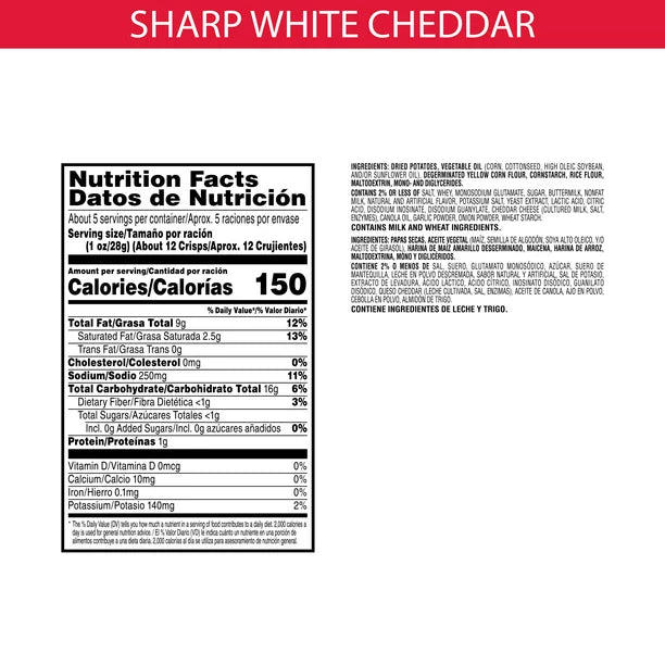 Satisfaga los antojos con el gran sabor y el crujido audaz de las papas fritas con queso cheddar blanco Sharp de Pringles