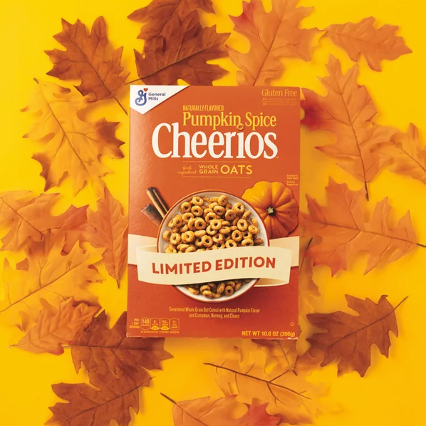 Una caja familiar de 18.5 oz de cereal de desayuno Pumpkin Spice Cheerios