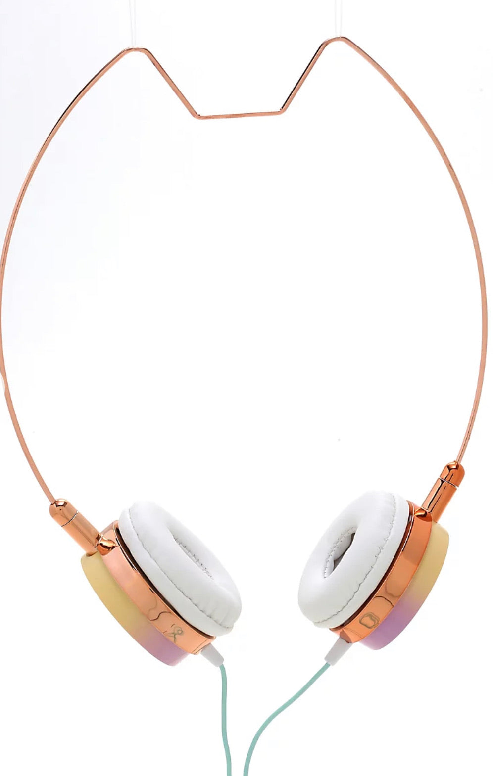 ¡Maullar! Escuche algunas melodías perfectamente divertidas con estos auriculares Pusheen. Cuentan con un contorno de alambre de orejas de gato y el contorno de Pusheen en el lateral con un fondo ombre. Longitud del cable: aprox. 6 " Compatible con dispositivos de audio jack de 3,5 mm
