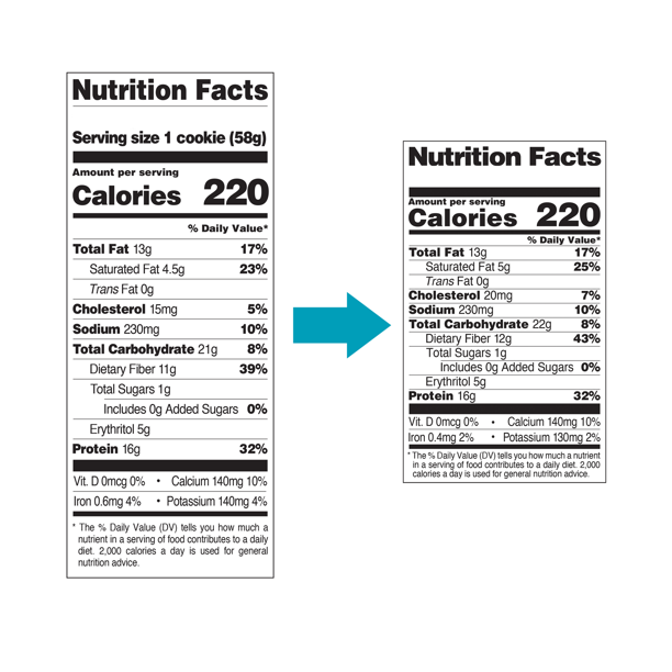 Saborizado con otros sabores naturales Por galleta: 16 g de proteína; 5 g de carbohidratos netos (21 g de carbohidratos - 11 g de fibra - 5 g de eritritol = 5 g de carbohidratos netos); 1 gramo de azúcar; 11 g de fibra. Consulte la información nutricional para conocer las calorías, el total de grasas y el contenido de grasas saturadas. ¡Suave y masticable! Quest Nutrition tiene la misión de hacer que los alimentos que anhelas trabajen para ti, no en tu contra.