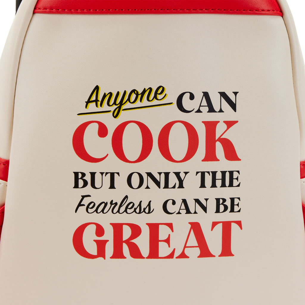 Delicias suntuosas hierven a fuego lento en la cocina, y el secreto de la salsa está debajo de un sombrero. Capture sus escenas de cocina animadas favoritas y demuestre su amor por las delicias culinarias con esta mini mochila Loungefly Disney-Pixar Ratatouille 15th Anniversary Linguini Cosplay. En el frente de esta mochila, la parte superior de la cabeza de Linguini sobresale, su sombrero de chef aplicado se extiende más allá de los bordes de la cúpula de la mochila. Apaga las luces y se revela el secreto del éxito de Linguini: ¡la forma de Remy brilla desde abajo! Un bolsillo oculto está ubicado detrás del cabello de Linguini, rematado con un dije de cremallera esmaltado de una cuña de queso, solo para Remy. Un bolsillo lateral presenta un adorable estampado de una cuchara y un tenedor de madera. En la parte posterior, un mensaje grabado dice: "Cualquiera puede cocinar, pero solo los intrépidos pueden ser geniales". Esta mochila es el complemento perfecto para combinar con un conjunto Disney o para convertir cualquier salida en una ocasión mágica y especial.