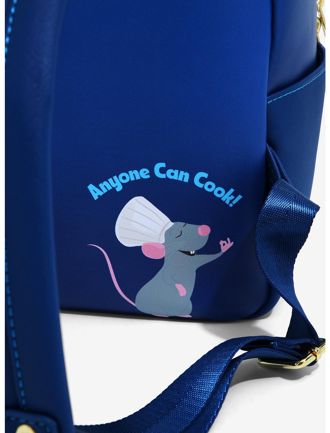 ¡Prepárate para tu próxima aventura gastronómica con Remy y esta minimochila de Disney•Pixar de Loungefly! Con aplicaciones frontales de Gusteau y Remy (¡debajo del gorro de chef de Linguini!), los dos chefs posan sobre un pintoresco fondo parisino, listos para crear un look de buen gusto para cualquiera de sus atuendos. También cuenta con herrajes dorados, una insignia esmaltada de la marca, dos bolsillos laterales y correas ajustables para los hombros. Da vuelta la bolsa para revelar otro gráfico de Remy debajo de "¡Cualquiera puede cocinar!" ¡letras!