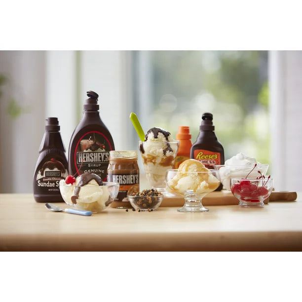 Rocíe y vierta la cobertura REESE'S hecha de mantequilla de maní real sobre sus postres favoritos como helado, brownies, sundaes y barras.
