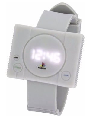 - Con la forma de la PlayStation original, puedes utilizar los botones clásicos para ajustar y mostrar la hora. También tiene una pantalla retroiluminada iluminada.