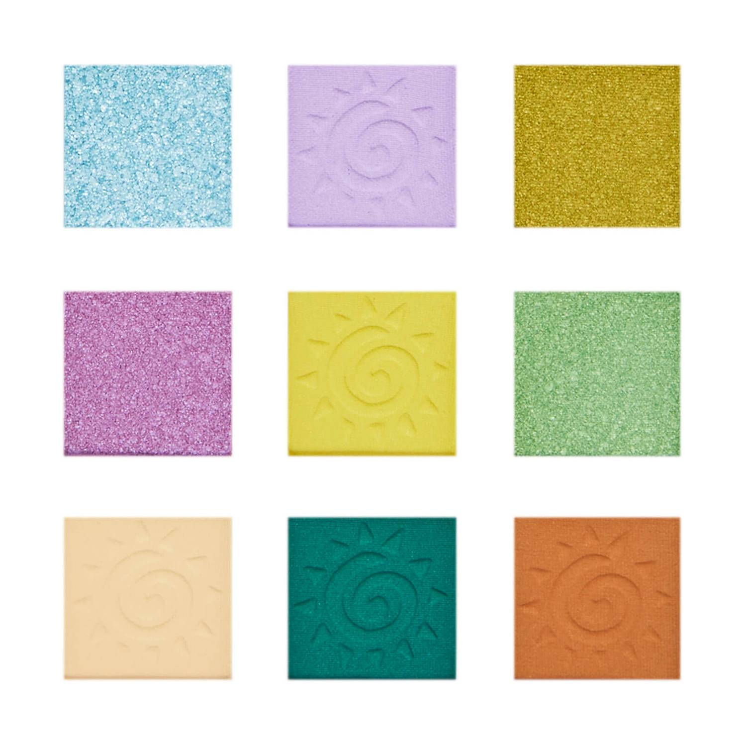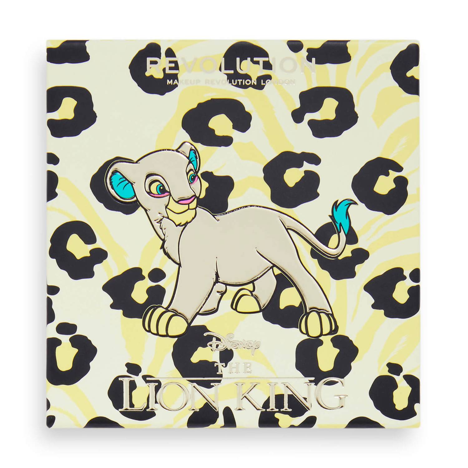 La paleta Revolution Jungle Princess inspirada en The Lion King de Disney está inspirada en Nala y presenta nueve tonos pastel geniales de brillos y mates, en tonos púrpura y verde, algunos en relieve con íconos del sol. Los nombres de los tonos incluyen MANE GAL - un brillo azul pastel, ROYAL - un mate lila pastel y ELEPHANT GRAVEYARD - un mate verde intenso. Esta paleta presenta una Nala dorada en relieve en el frente y complementará cualquier tono de piel.