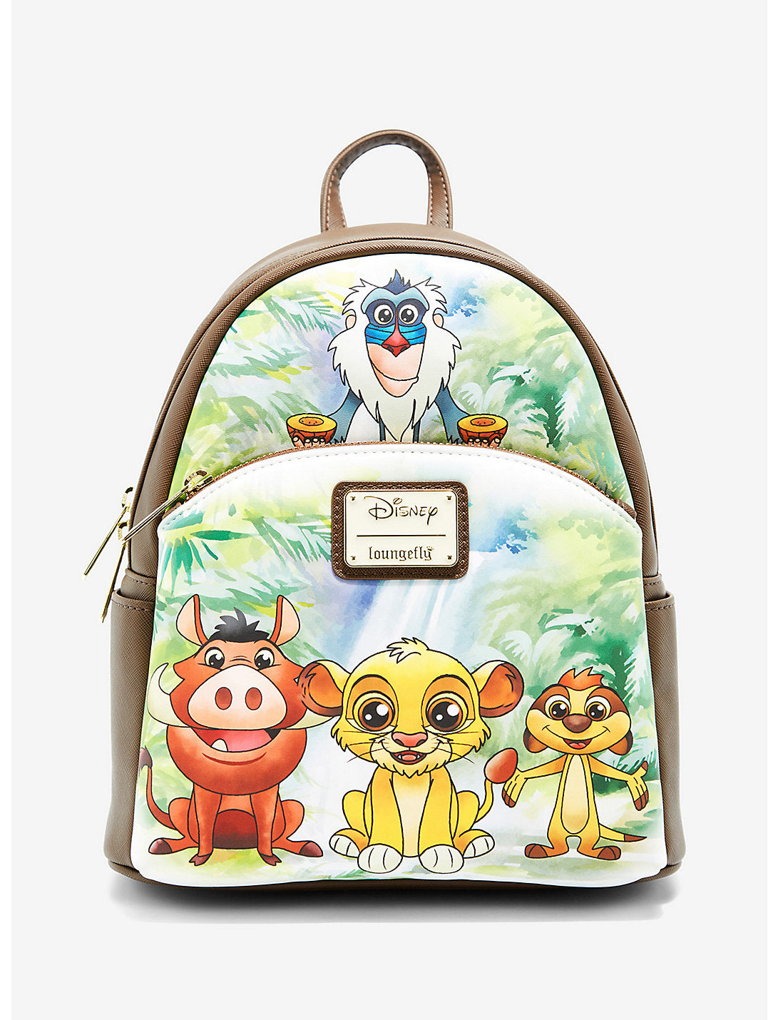 ¡Di hakuna matata y lleva todas tus necesidades diarias sin preocuparte con esta mini mochila Disney Loungefly! Con un gráfico frontal de Simba, Timon, Pumba y Rafiki de The Lion King en adorables formas de chibi, los herrajes en tonos dorados, la insignia de la marca esmaltada, las correas de hombro ajustables y el forro interior estampado permiten un estilo cómodo para las Pride Lands. y más allá.