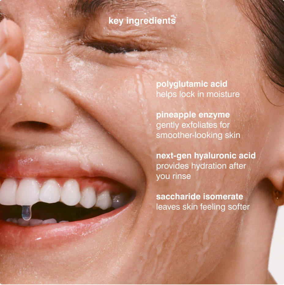 Lo que debes saber: Pineapple Refresh es el primer paso en la rutina de cuidado de rhode. Limpia y exfolia suavemente gracias a la enzima de piña y a tensioactivos delicados que no alteran la barrera de hidratación de la piel. Su fórmula deja una sensación de suavidad y está clínicamente comprobado que mejora de inmediato los niveles de hidratación después del lavado.