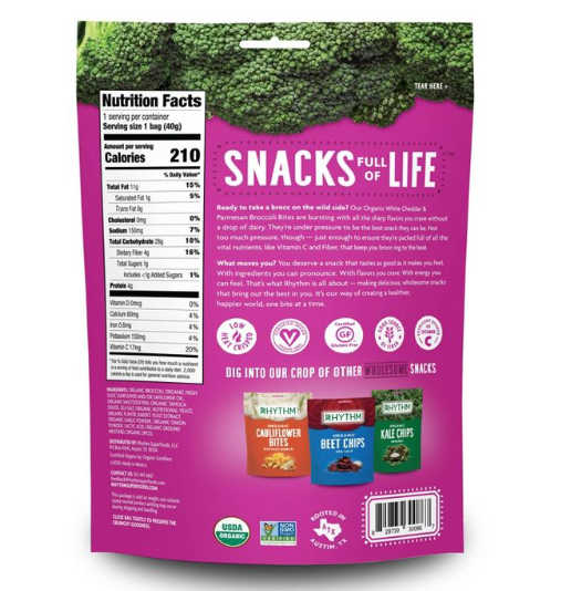 Rhythm White Cheddar & Parmesan Organic Broccoli Bites - 1.4oz
