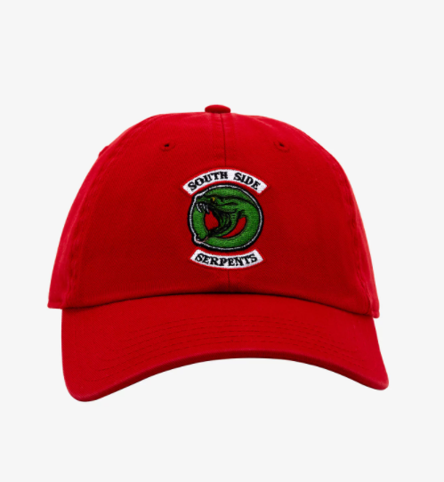 Una serpiente no muda su piel tan fácilmente, y tampoco tu lealtad. Representa con orgullo a tus serpientes del lado sur. Esta gorra de papá roja de Riverdale tiene una serpiente circular bordada en el medio con un diseño de texto bordado "South Side Serpents". Visera curva y hebilla ajustable. Cheryl Blossom aprobado.