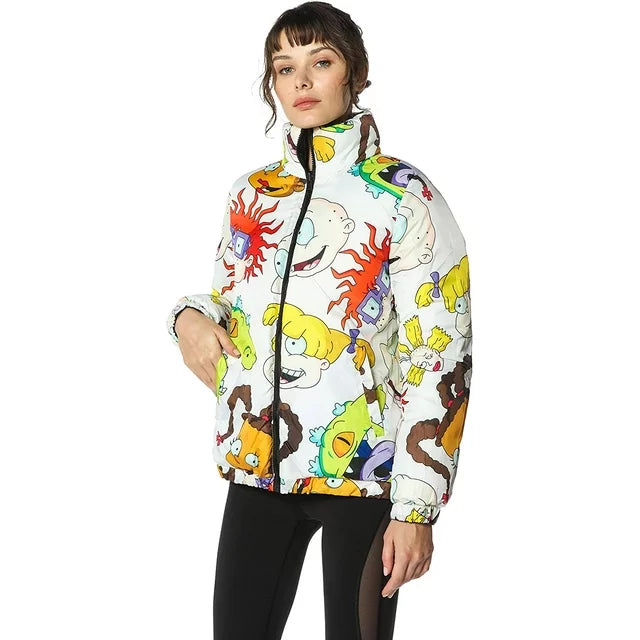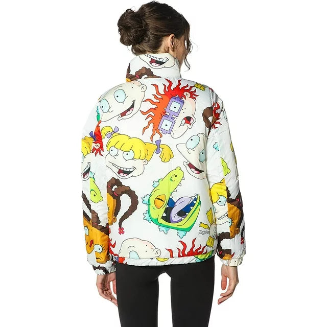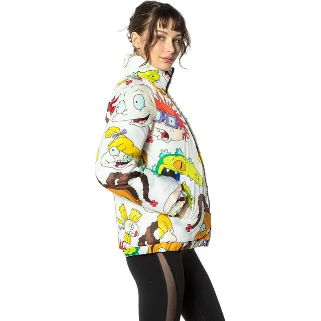 Si prefieres chaquetas sin capucha, puedes utilizar el Rugrats Reversible Cire Puffer, que tiene un diseño favorecedor que puedes usar sin ningún problema. Esta prenda exterior de ajuste perfecto está disponible en blanco y negro con un gran estampado de Chuckie en la espalda. Además, puedes usarla como chaqueta de Rugrats al revés sin ninguna duda. La chaqueta está confeccionada 100% poliéster, por lo que será cómoda de usar durante todo el día. Además, el tejido exterior Cire garantiza una calidez total. Los materiales transpirables utilizados en la chaqueta garantizan que usted se sienta cómodo siempre que use la ropa exterior.