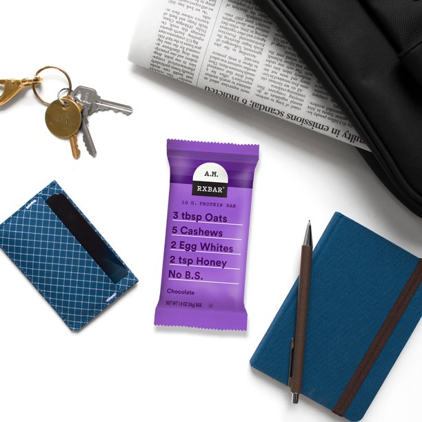 Relleno con 10 g de proteína (15 % de tu valor diario) y 4 g de fibra, sin gluten RXBAR A.M. Las barras de proteína son el refrigerio perfecto para cualquier estilo de vida saludable.