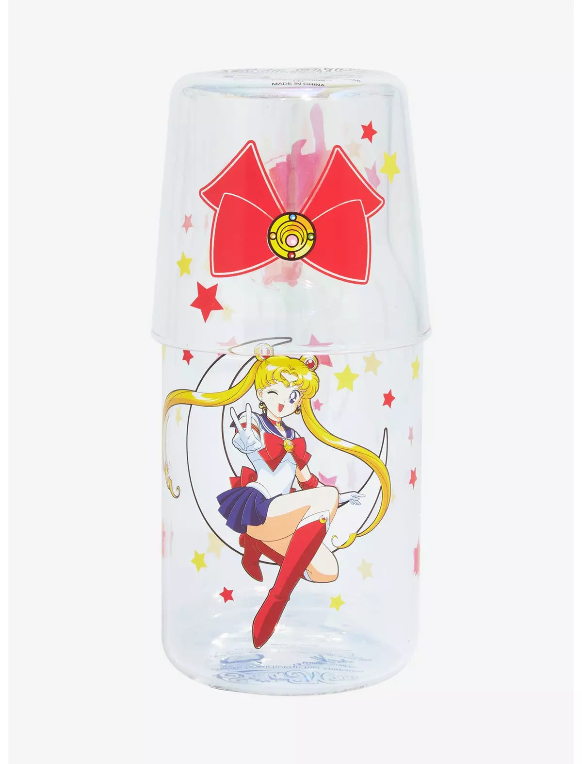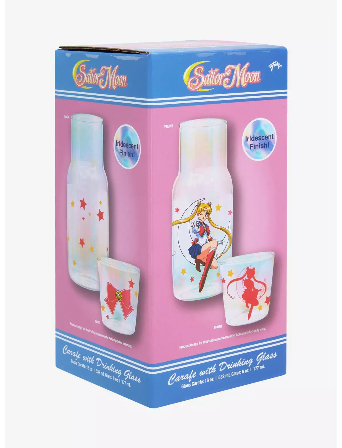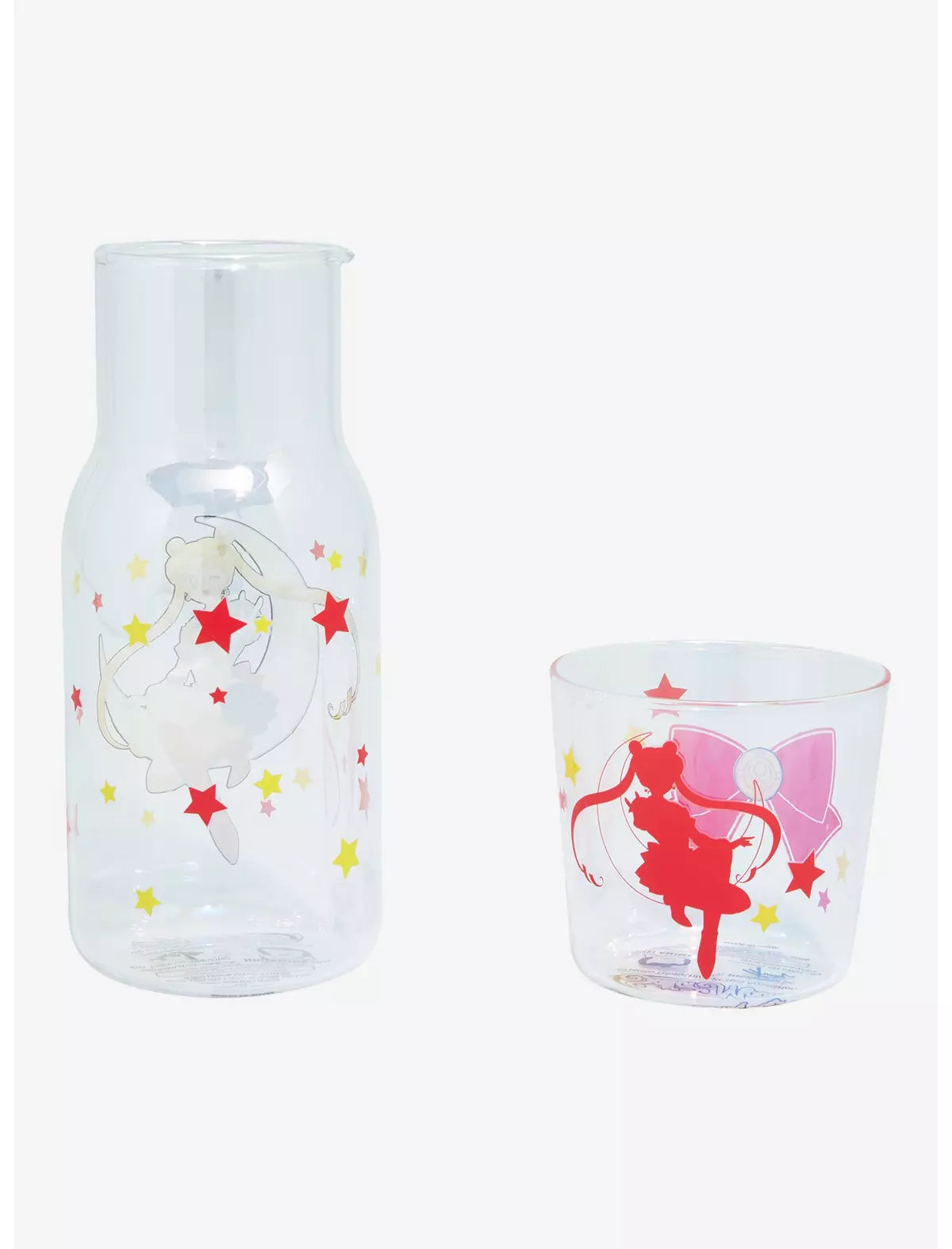 ¡Manténgase hidratado al estilo Sailor Guardian con este juego de jarra y taza inspirado en Sailor Moon! Con un acabado iridiscente, esta jarra incluye un retrato de Sailor Moon con un estampado integral de estrellas. Con una silueta de la Guardiana y su lazo en el vaso apilable, este juego es perfecto para darle un poco de magia a tu bebida.