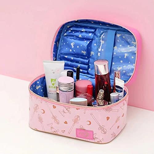 - La bolsa de cosméticos Sailor Moon Anime está hecha de cuero duradero y hermoso forro suave, que es más duradera y más fácil de cuidar que otros productos similares. La ranura para brochas de maquillaje en la bolsa de almacenamiento te permite almacenar fácilmente brochas de maquillaje, y el gran espacio es más propicio para tu almacenamiento de maquillaje