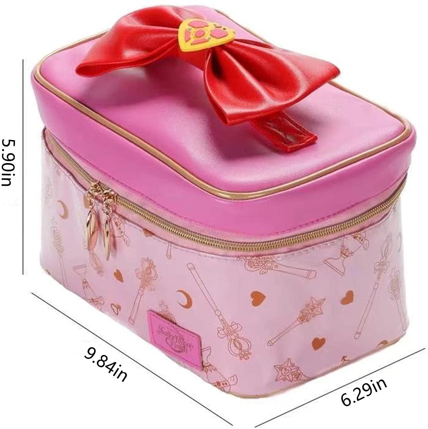 - Las asas de lazo del maquillaje de anime son muy bonitas, el embalaje exterior rosa está lleno de elegancia, y la cremallera dorada hace que la bolsa de cosméticos sea aún más ingeniosa, te enamorarás de ella