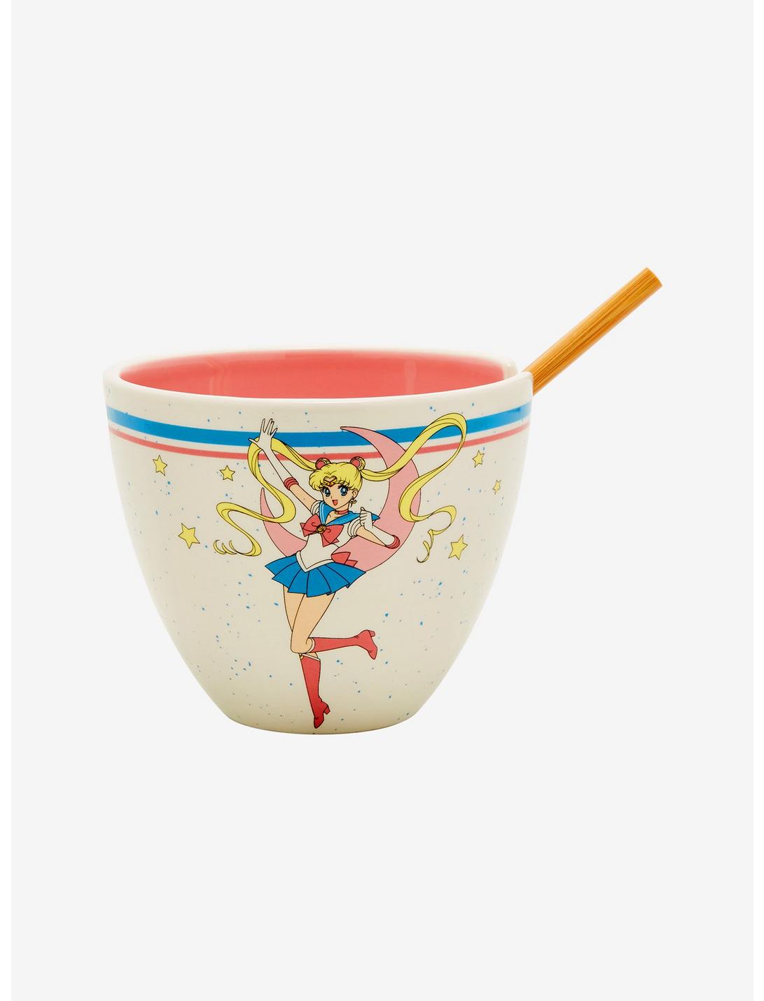 ¡Tómate un descanso de salvar el mundo con este tazón de ramen de Sailor Moon! Con un retrato de Sailor Moon con un detalle de rayas pastel en la parte superior, este tazón viene con palillos para que comer una comida caliente entre batallas sea simple.