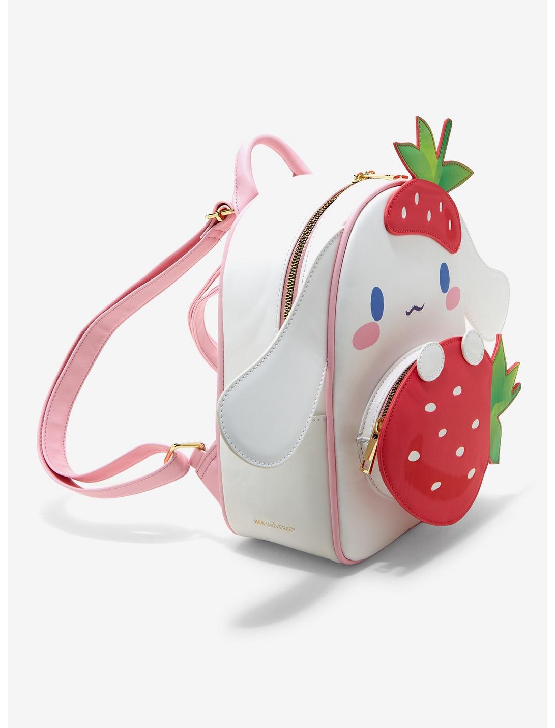¡Mantenga sus elementos esenciales asegurados de la manera más dulce! Tu cachorro favorito de Sanrio está aquí para agregar un toque lindo de bayas a tus accesorios. Esta minimochila presenta Cinnamoroll en la parte delantera, con orejas aplicadas en 3D y sombrero de fresa. ¡El bolsillo frontal con cremallera también es una fresa! Viene con bolsillo interior con cremallera y bolsillos laterales.