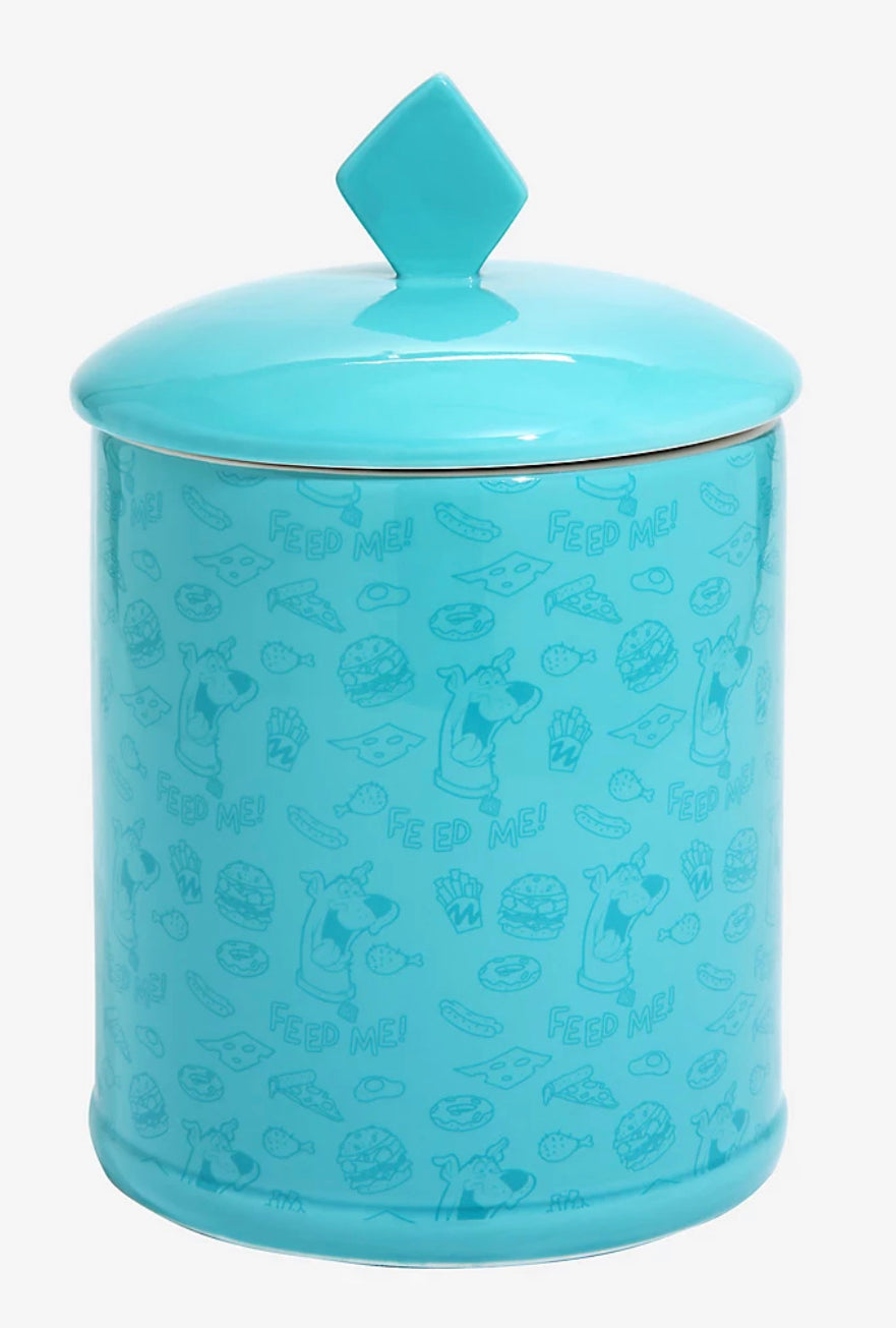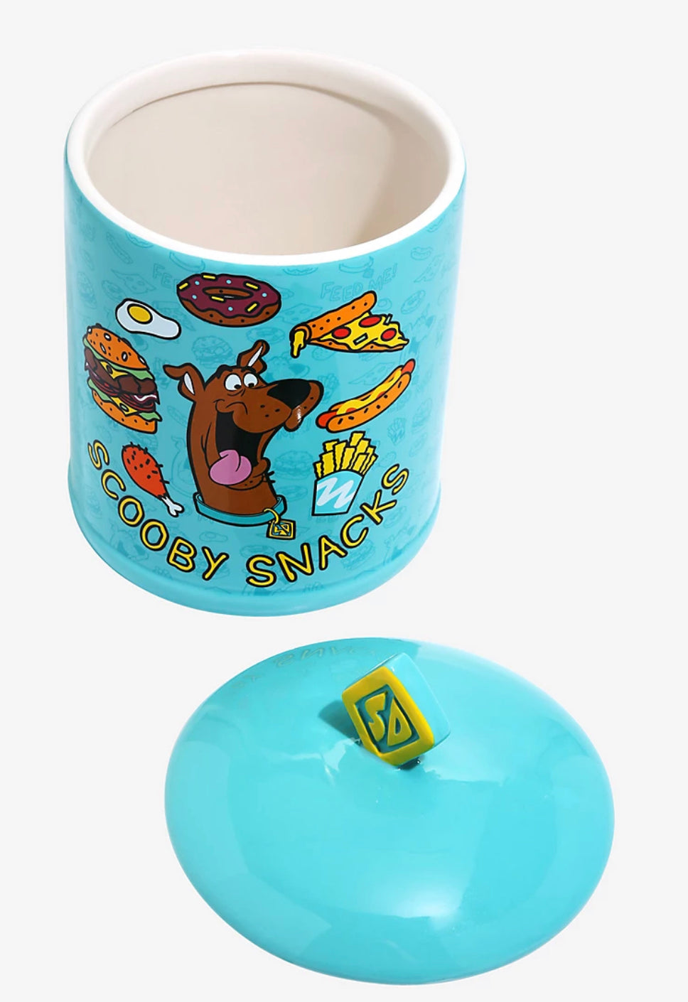 ¡Guarde todas sus galletas, bocadillos Scooby y más en este frasco de bocadillos Scooby-Doo! Con el perro que trabaja como detective rodeado de sus comidas favoritas, este frasco es perfecto para compartir (o no compartir) tus golosinas con Shaggy con tu Scoob. Cerámico