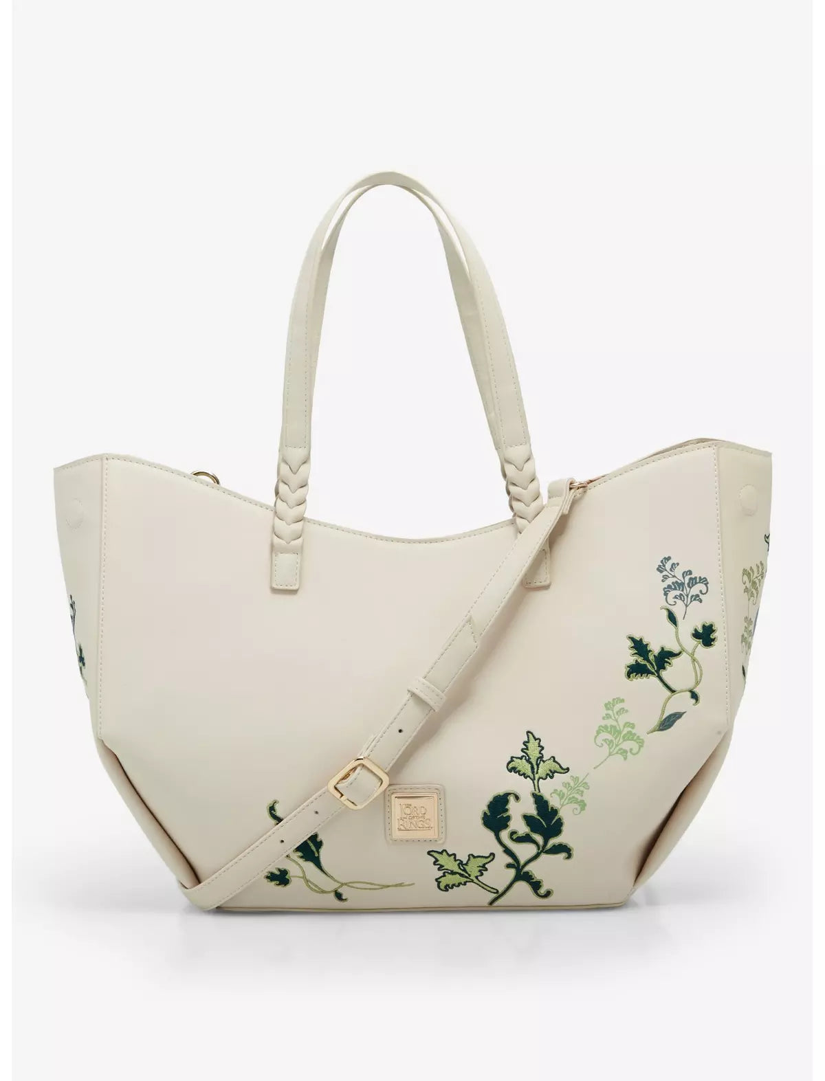 ¡Viaja por la Tierra Media con estilo con este bolso de mano inspirado en El Señor de los Anillos! Con un retrato de la Comunidad cruzando un puente en Rivendel, el frente de este bolso luce detalles vegetales bordados. Con bordado a juego en la espalda y los costados, este bolso incluye una correa cruzada extraíble y un llavero de cuero extraíble, perfecto para completar tu look de fantasía.