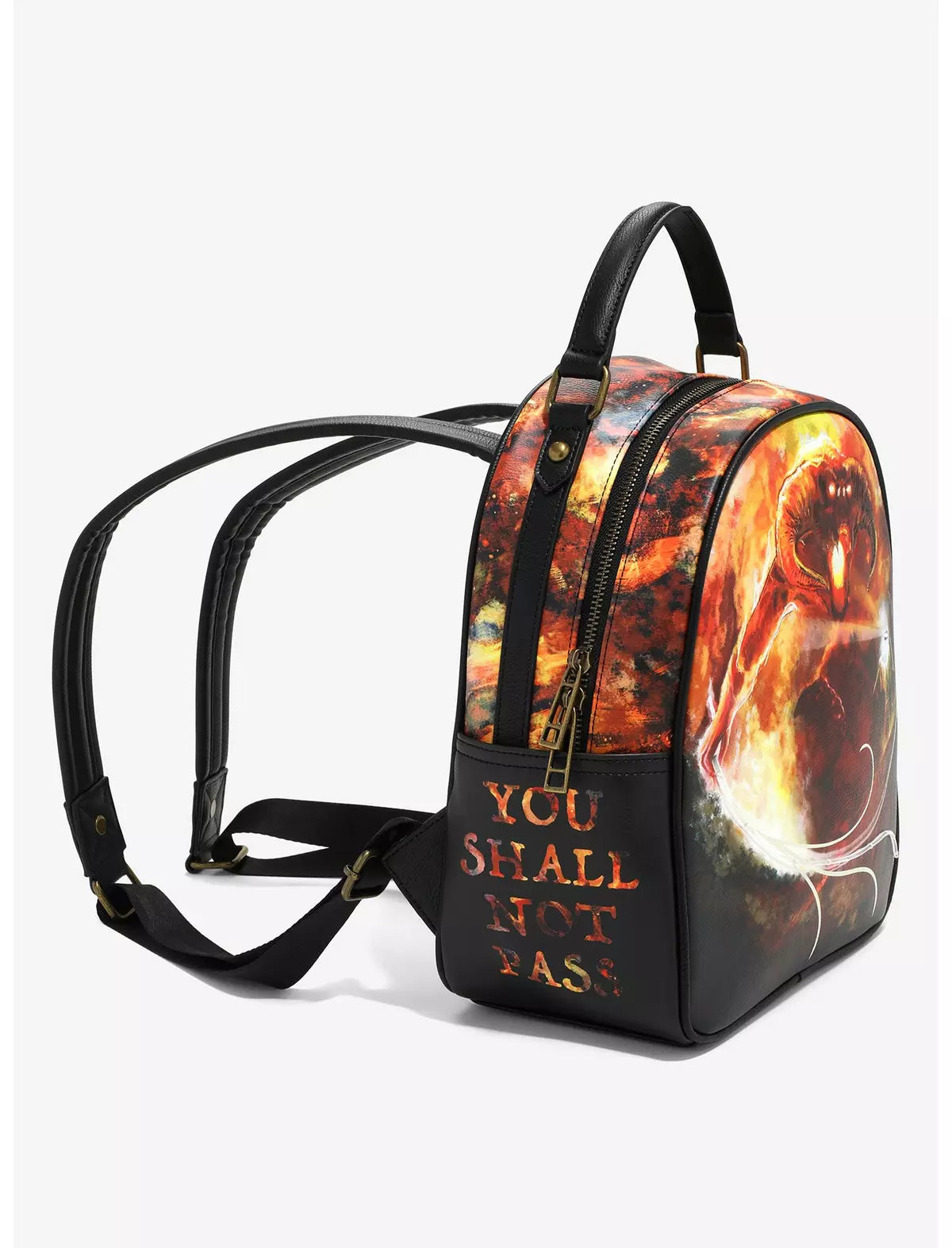 - ¡Lleva tus elementos esenciales al estilo de la Tierra Media con esta mini mochila inspirada en El Señor de los Anillos! Con Gandalf enfrentándose al Balrog, el frente incluye detalles iluminados a lo largo del bastón y el látigo. Con una Puerta de Durin que brilla en la oscuridad en la parte posterior, este bolso es perfecto para tu próximo viaje a Mordor y más allá.