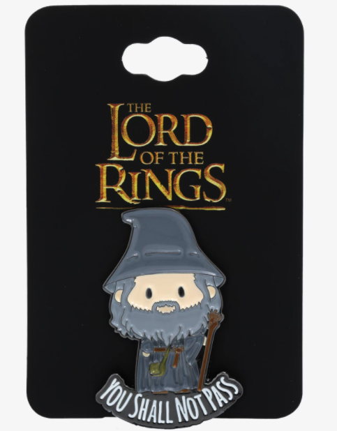 ¿Necesitas una forma un poco menos dramática de decirle a Balrog que vuelva a las sombras? ¡Este pin de El Señor de los Anillos lo hará! Un chibi Gandalf se encuentra por encima de su icónica línea "NO PASARÁS".