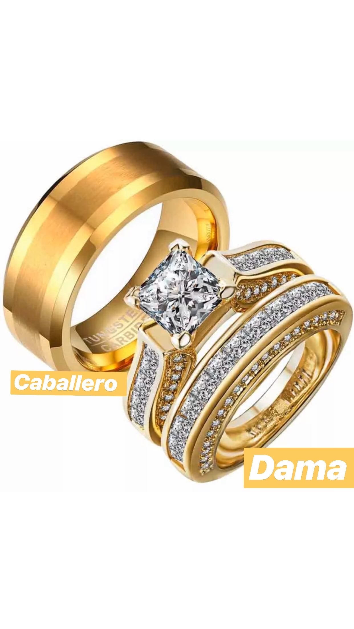 Set De Anillos Para Pareja Dorados Piedra Zirconia