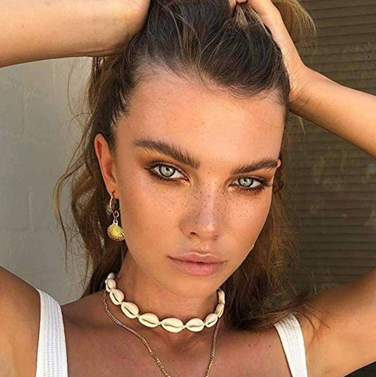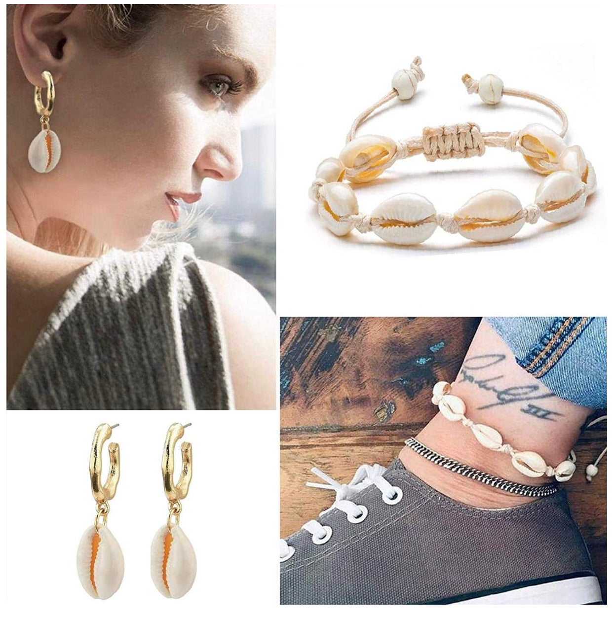 - Gargantilla de concha: el collar de cáñamo de cordón y tobillera de concha están diseñados en una disposición ordenada, se ve costoso e impresionante en persona. Puedes ir bien con este collar de concha en cualquier ocasión: en casa, en la playa de verano.