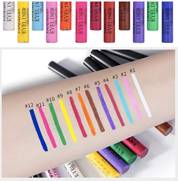 - Multiusos: el mejor juego de delineadores de ojos de color se puede utilizar no solo como delineador, sino también como sombra de ojos. Es adecuado para pintura facial y arte de purpurina en la cara.
