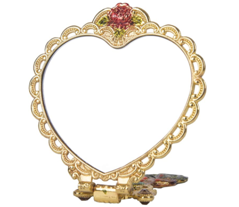 - Espejo en forma de corazón, sofisticado patrón de pavo real, plegable. Excelente artesanía, un gran complemento para tu conjunto de cosméticos.