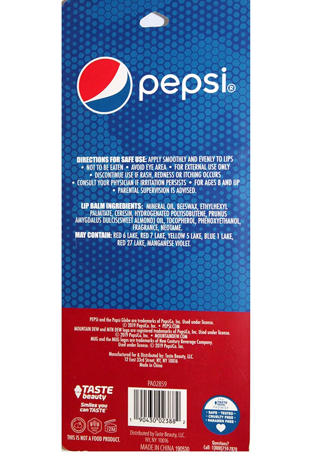 - 1 paquete de bálsamo labial con sabor a Pepsi Soda de Taste Beauty.