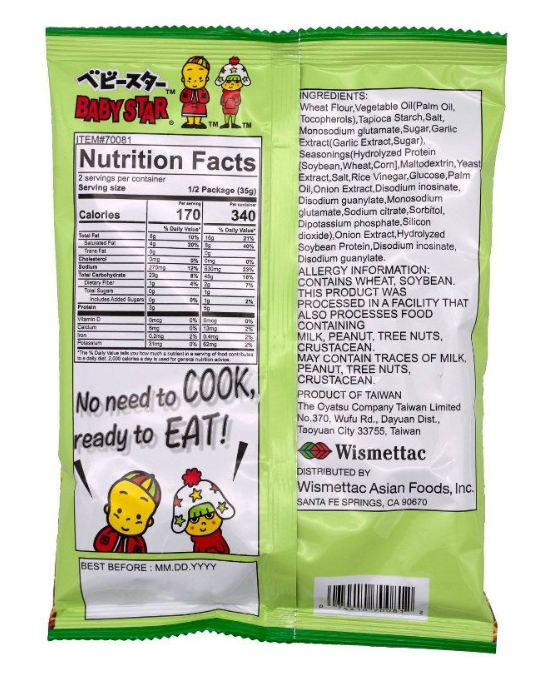 Shirakiku Baby Star Ramen Garlic Chips - 2.47oz