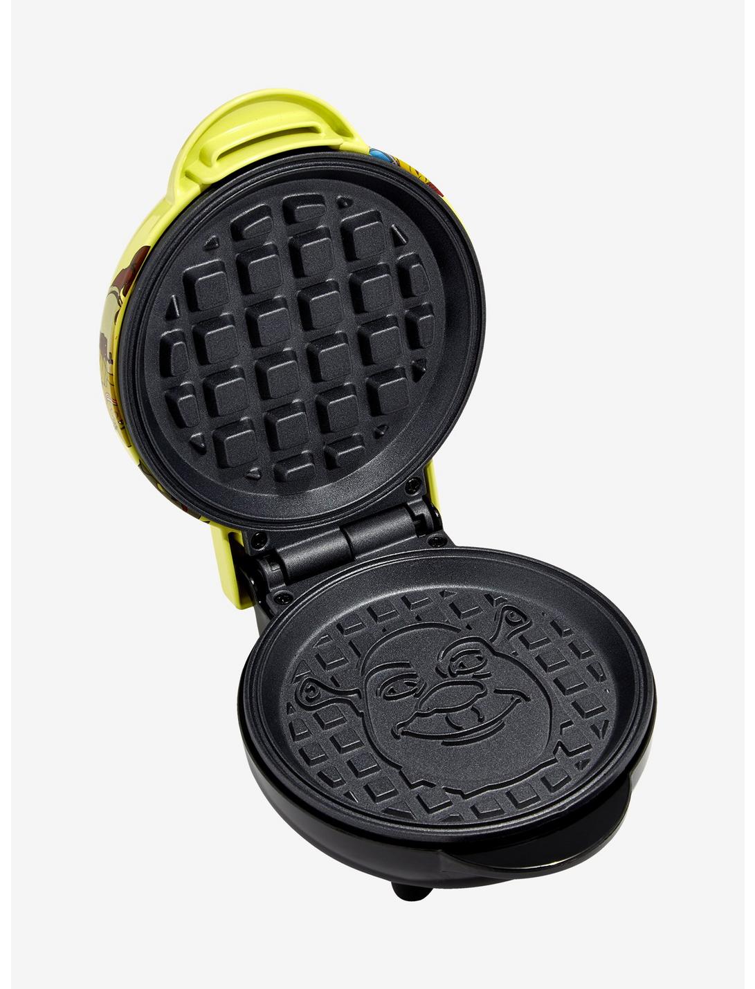 ¡Prepárate porque por la mañana, Donkey está haciendo waffles! ¡Ahora puedes ayudarlo con esta mini wafflera inspirada en Shrek! Con un diseño exterior con estampado completo de tus personajes favoritos de la divertida película, esta mini máquina para hacer waffles también cuenta con placas antiadherentes para facilitar la limpieza y un retrato de Shrek para que cada waffle pueda saludarte con una sonrisa del ogro. Perfecto para los fanáticos de la película clásica.