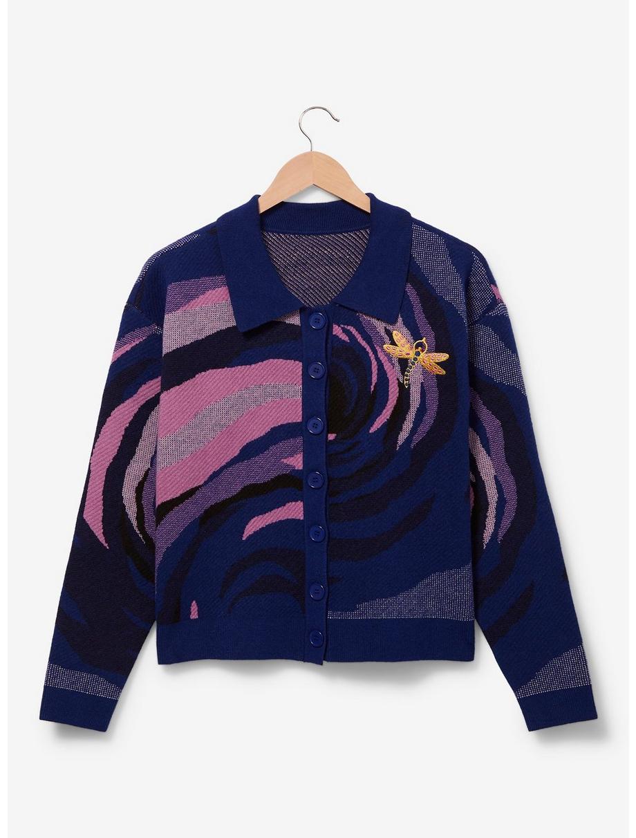 ¡Prepárate para descubrir qué hay al otro lado de la puerta con este cárdigan inspirado en Coraline! Con un patrón multicolor, la parte delantera de este cárdigan incluye un cuello y un parche de libélula bordado, mientras que la espalda luce un retrato bordado de Coraline atravesando el túnel. Este suéter es perfecto para tu próxima noche de cine, para explorar pasadizos ocultos y más allá.