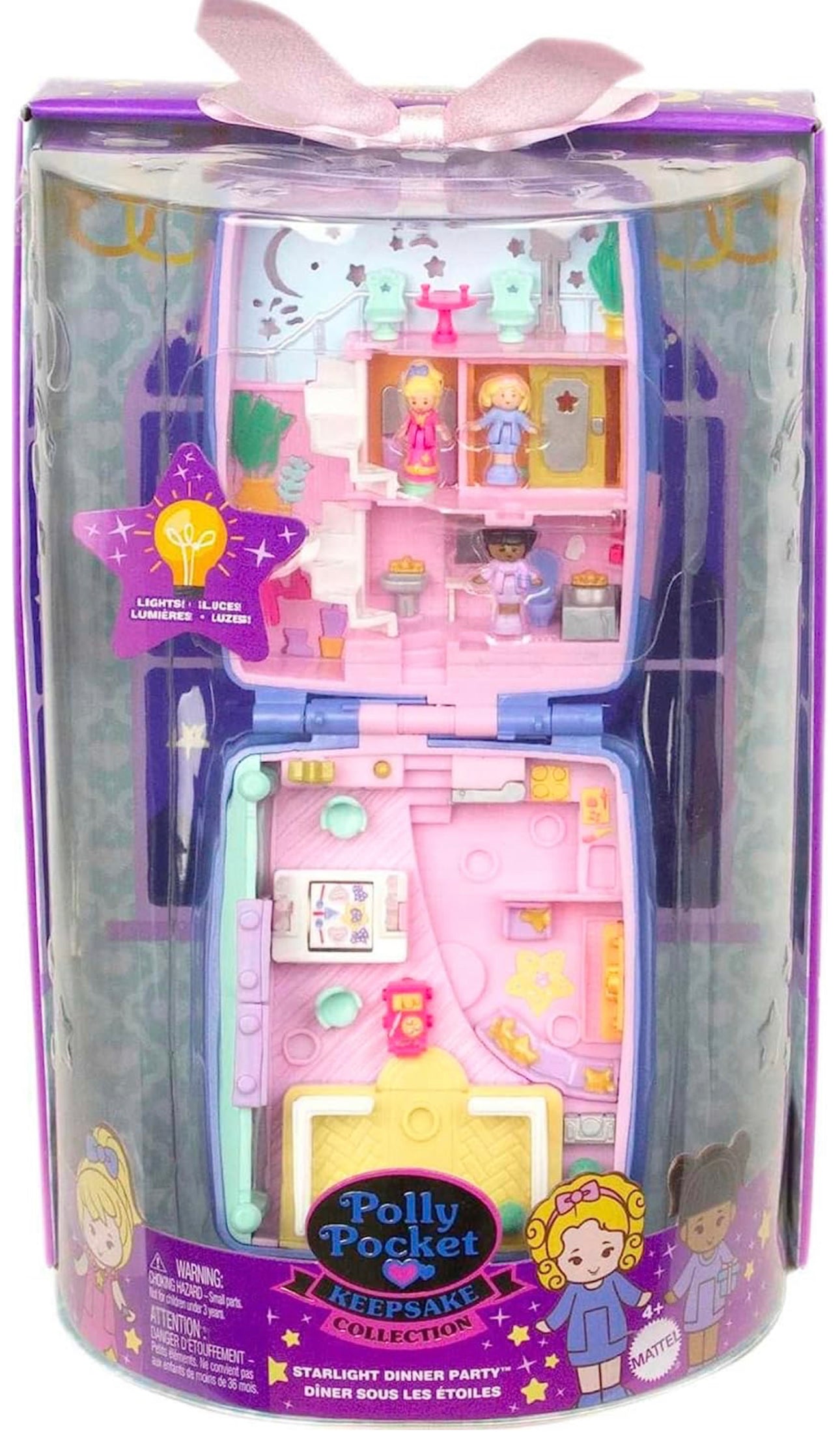 - Este juego compacto para cena de Polly Pocket Starlight es un juego especial de reedición tradicional de la bóveda de la colección Keepsake con detalles vintage, mejoras modernas y embalaje mostrable.