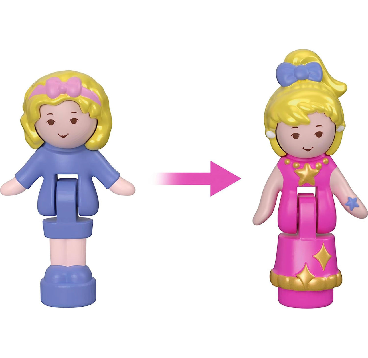 - El juego incluye 3 muñecas: una muñeca amiga y 2 muñecas Polly, una vestida para el día y otra para la noche para contar historias durante todo el día