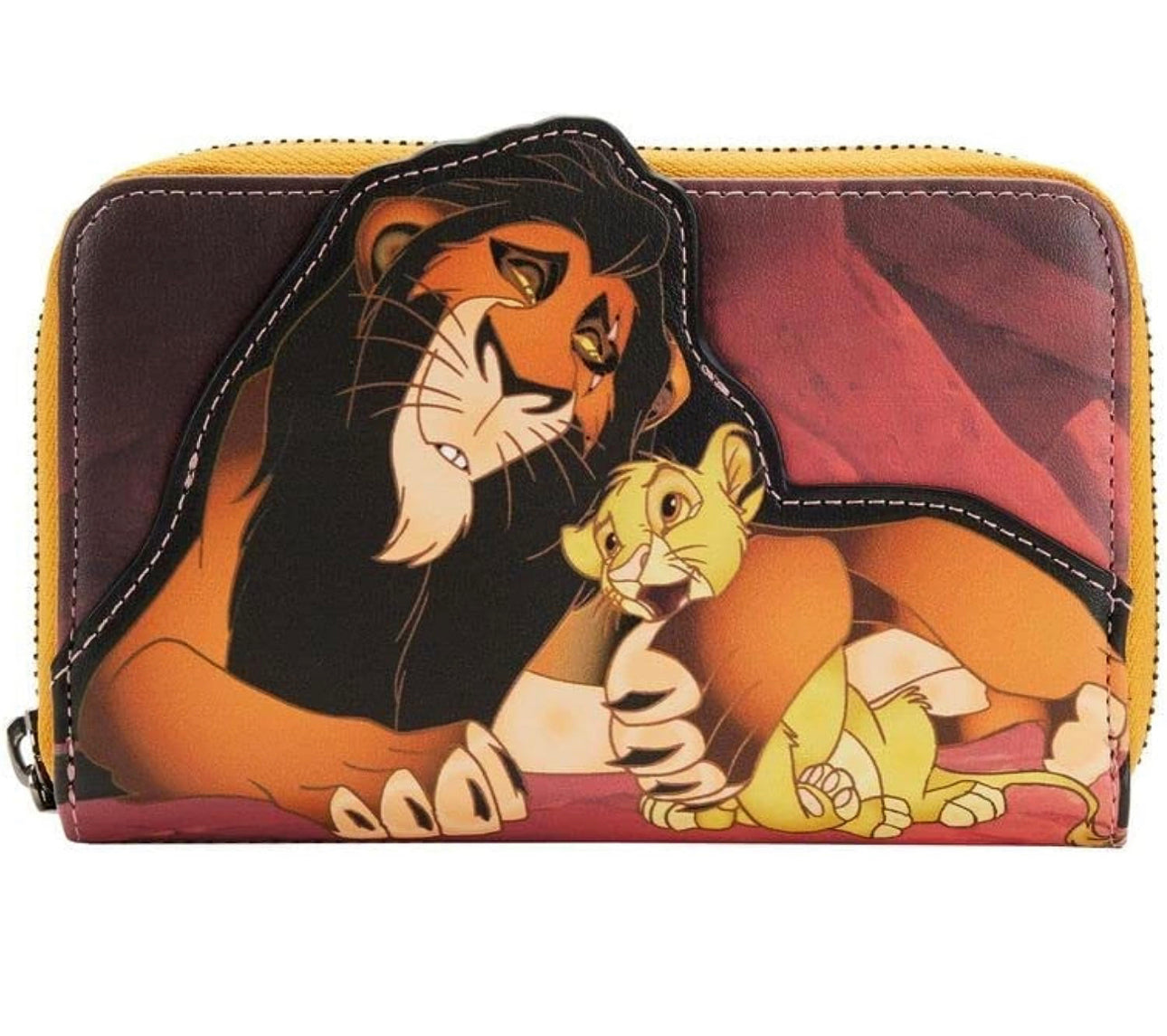 - La cartera Loungefly Lion King Villains Scene Scar Zip Around está hecha de cuero vegano (poliuretano).