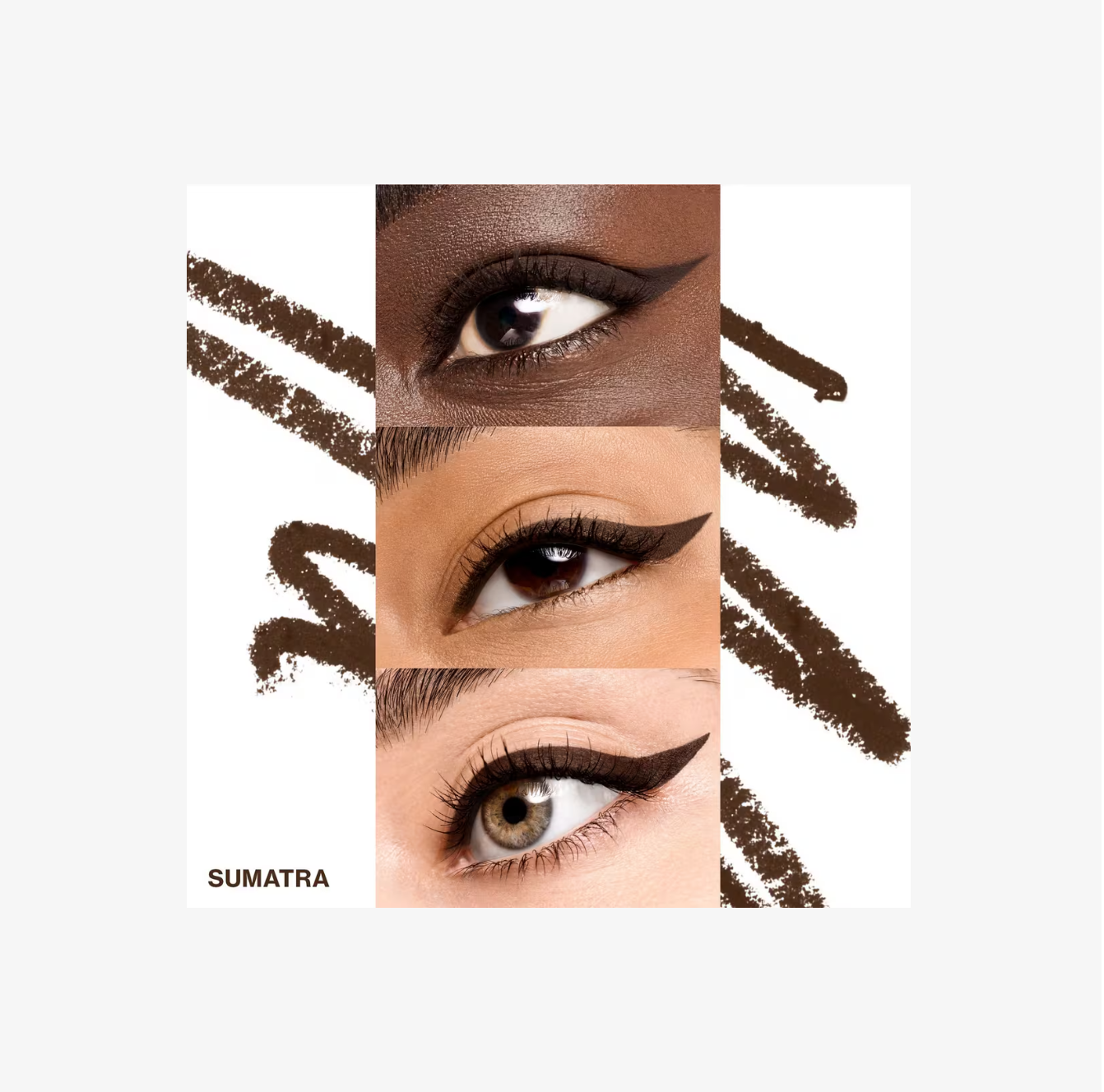 El Always Sharp Longwear Waterproof Kôhl Eyeliner Pencil de Smashbox mantiene su punta perfecta gracias a su afilado automático cada vez que giras la tapa. Este lápiz hiperpigmentado se aplica como un delineador líquido, creando líneas precisas que resaltan la mirada, incluso en la línea de agua y el borde interno del ojo.