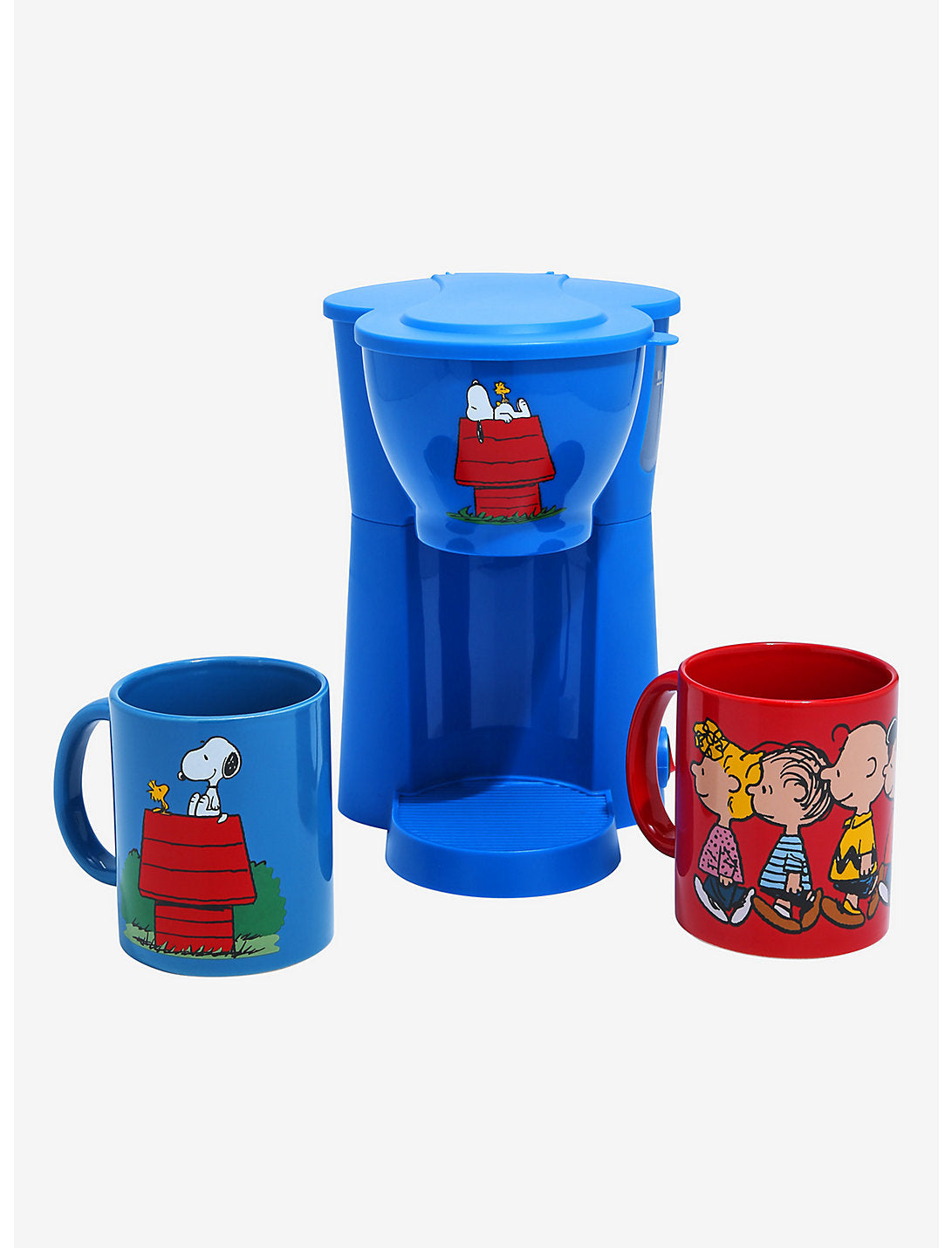 ¡Caramba! ¡Otro día significa otra taza de café para comenzar el día con Snoopy y la pandilla Peanuts! Con Snoopy y Woodstock descansando sobre la icónica casa roja para perros en el frente, esta cafetera viene con dos tazas inspiradas en Peanuts. ¡Perfecto para su próxima taza de café, té, chocolate caliente y más! Cuenta con un filtro permanente y una luz de encendido/apagado iluminada. Se prepara directamente en tazas.