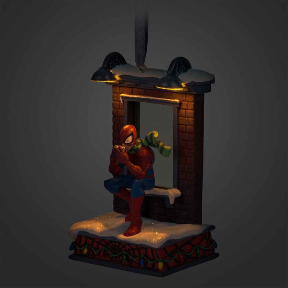 Los héroes no pueden irse de vacaciones mientras los malos permanecen ocupados. Spider-Man toma una bebida caliente durante su solitaria vigilia nocturna en esta escena ornamental completamente esculpida. La espectacular iluminación de las lámparas de seguridad de arriba hace que los montones de nieve brillen con esperanza para la humanidad.