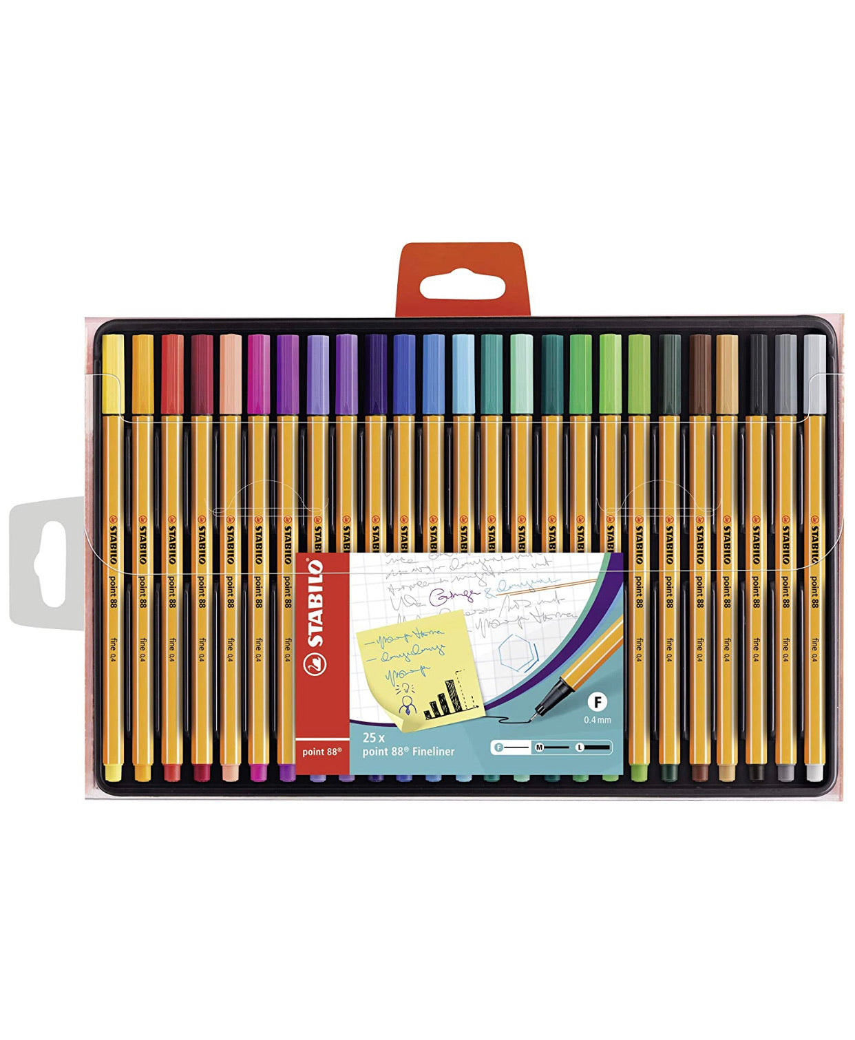 - 25 Stabilo 88 – Bolígrafos portafolios – Juego de base acuosa, fineliner – .4 mm punta – varios colores
