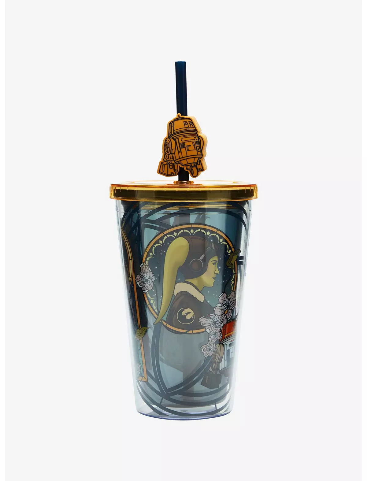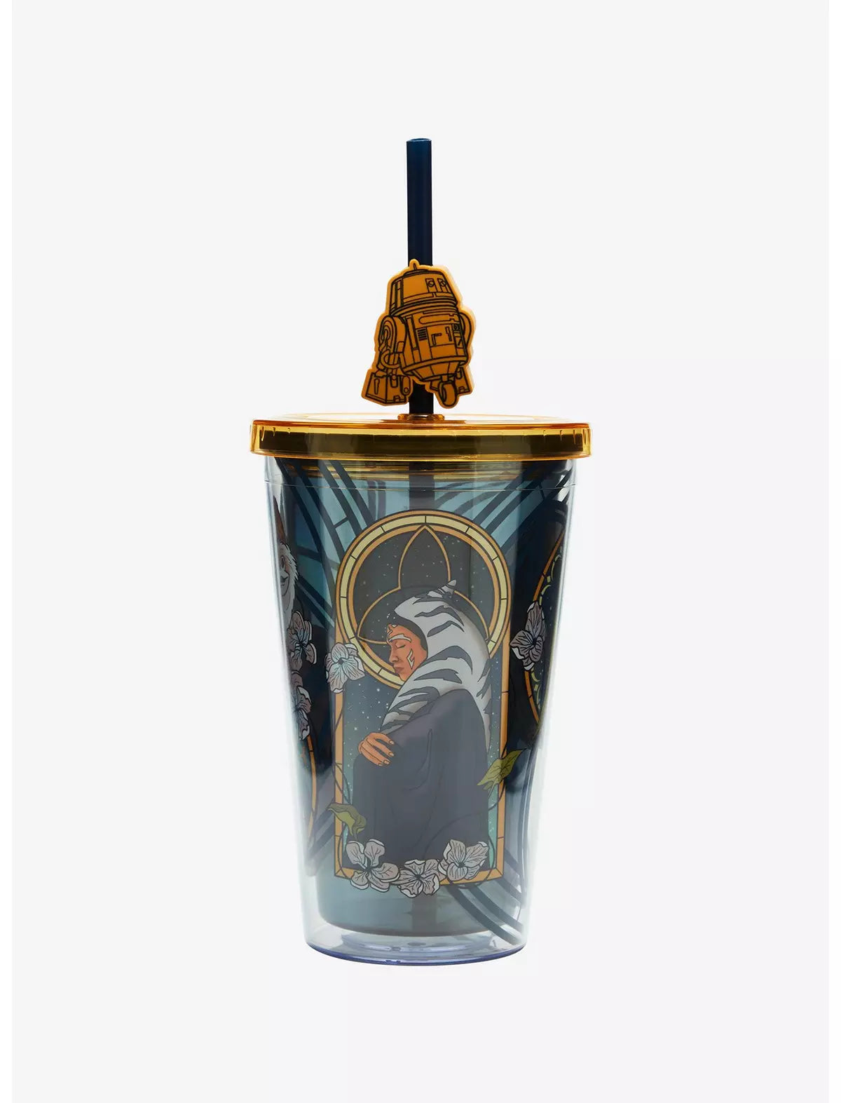 ¡La Fuerza está con esta copa de carnaval inspirada en Star Wars! Esta bebida presenta un retrato en vitral de Ahsoka adornado con detalles florales, además de un dije adicional de Chopper en la pajita. ¡Es imprescindible para cualquier misión!