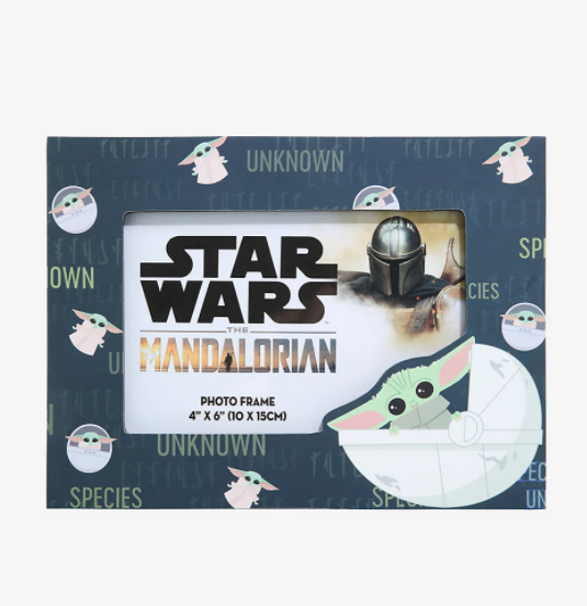 Mando guarda su artículo más preciado en un cochecito flotante. ¡Puedes guardar tu recuerdo más preciado en este marco de fotos que presenta un adorable diseño chibi de "Baby Yoda"! El Niño mantendrá su preciosa imagen a salvo de la esquina de este marco mandaloriano.